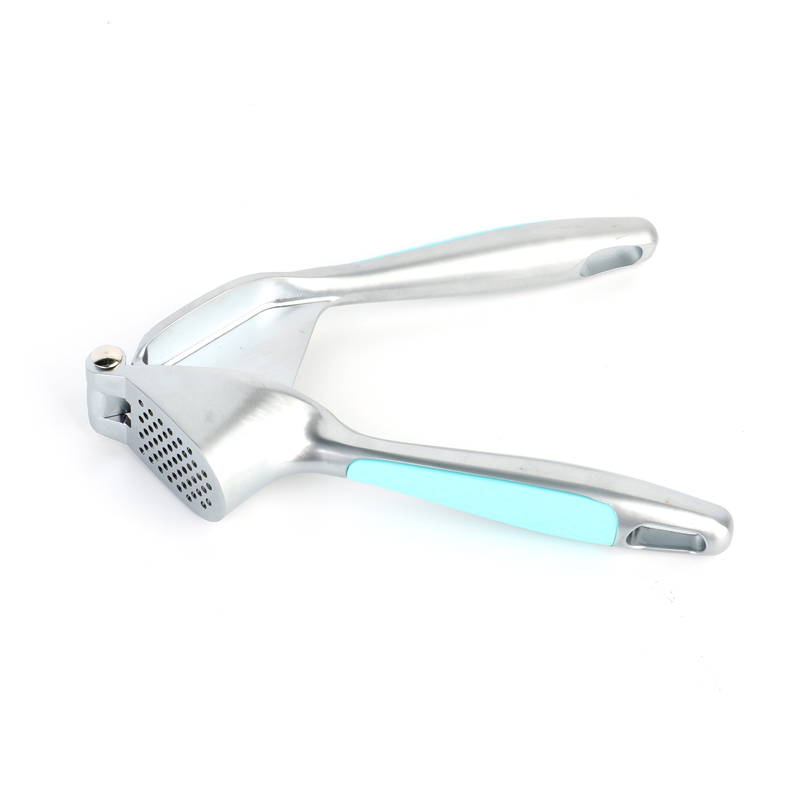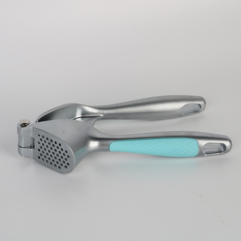 The garlic press is made from high-quality, environmentally friendly zinc alloy.After being die-cast and finely polished,it is then electroplated in a variety of colors.Each color is paired with a matching Macaroon-style plastic handle designed to prevent slipping.This not only enhances the product’s overall quality but also ensures that it remains shiny and clean even when exposed to water,oil,sauces and vinegar in daily use. The new design durable zinc alloy garlic press’s holes for releasing garlic are densely arranged in a circular pattern.With the downward pressure from the pressing mechanism and the leverage principle in place,garlic paste is easily and efficiently extracted in a uniform and fine consistency, significantly improving cooking efficiency.