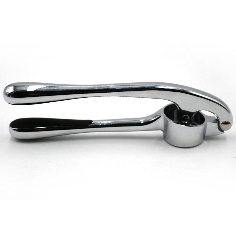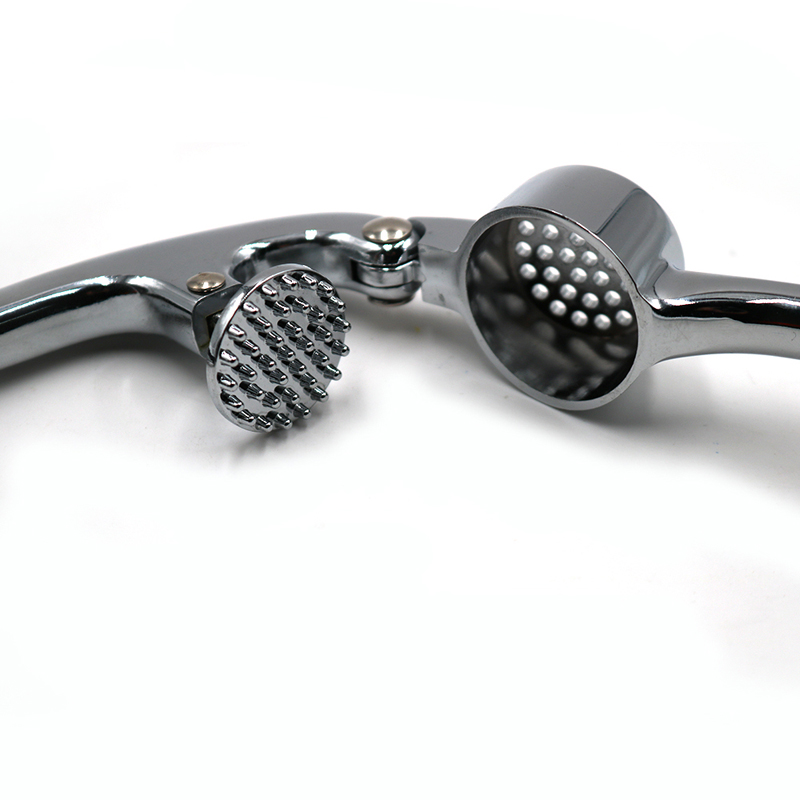 The premium zinc alloy garlic press is made from high-quality,environmentally friendly zinc alloy.After die-casting,it is hand-polished to a fine and smooth surface.The surface is then electroplated in various colors,each perfectly complementing the rounded,arc-shaped handle of the garlic press,creating a sleek and polished appearance.This treatment not only gives the garlic press a distinctive metallic luster that enhances its premium appearance but also ensures its durability against corrosion and rust.Even when exposed to water,oil,sauces or vinegar in daily use,the product remains bright and new.The premium zinc alloy garlic press features finely distributed,round holes for pressing garlic with the downward pressure of the pressing plate and the leverage mechanism,garlic is easily and efficiently mashed into a fine paste,significantly improving cooking efficiency.