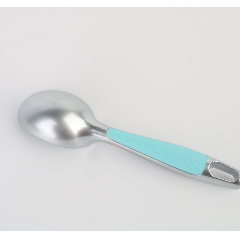 For the professional zinc alloy ice cream scoop with comfortable grip dishwasher safe,it weighs 88 grams and measures 16.5 centimeters in length.A hanging hole is designed at the end of the handle,making it convenient for storage and organization in any home setting while allowing easy hanging after cleaning to ensure thorough drying.We can produce this ice cream scoop in a variety of colors based on customer requirements and offer free samples for confirmation.